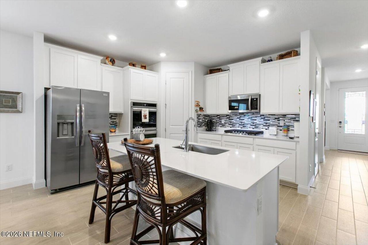 WOW!!BRAND NEW PRICE - BETTER THAN NEWWhy wait to build when you can move in NOW?Located in the heart of SilverLeaf, this 2024-built 4-bedroom, 2-bath home offers all the upgrades buyers end up paying extra for -- without the builder fees, delays, or surprise costs.The owner has already invested in: Designer kitchen backsplash Ceiling fans Fully fenced metal backyard Gutters Extended pavers Enclosed trash can areaInside, you'll love the 42'' cabinetry, stainless Frigidaire appliance package (gas range, refrigerator, dishwasher, microwave), plus washer & dryer INCLUDED.Ceramic tile flooring, modern vanities, screened lanai, smart home security features, and peaceful water views with no rear neighbors create the perfect blend of comfort and privacy.This is truly turnkey -- no punch list, no waiting, no added expense. This is truly turnkey -- no punch list, no waiting, no added expense. Located in highly desirable St. Johns County with top-rated schools and convenient access to shopping, dinning..and close to I-9